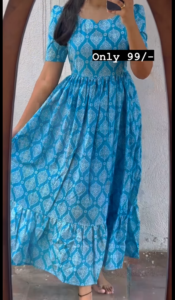 Sky Blue Cotton Printed Dress