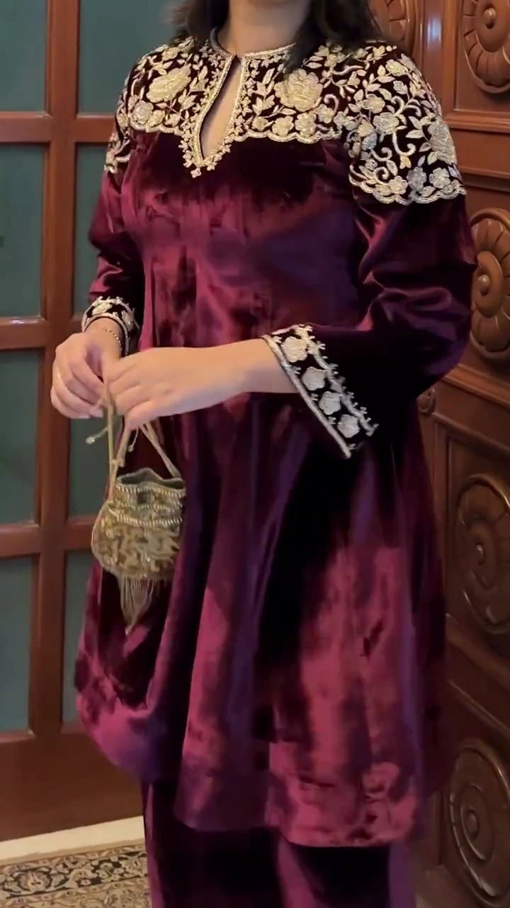 + Free ShippingThis women’s maroon velvet embroidered kurta set is a luxurious ethnic outfit designed for special occasions where elegance and richness matter. Crafted in a deep maroon velvet fabric, the kurta offers a royal and premium look that is perfect for festive celebrations, weddings, receptions, and traditional gatherings.