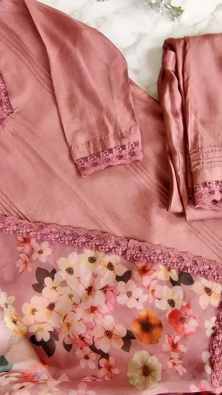 The floral printed dupatta adds charm and freshness to the overall outfit. The soft floral pattern brings contrast to the solid kurta and enhances the feminine appeal of the set. It drapes beautifully and completes the ethnic ensemble effortlessly.